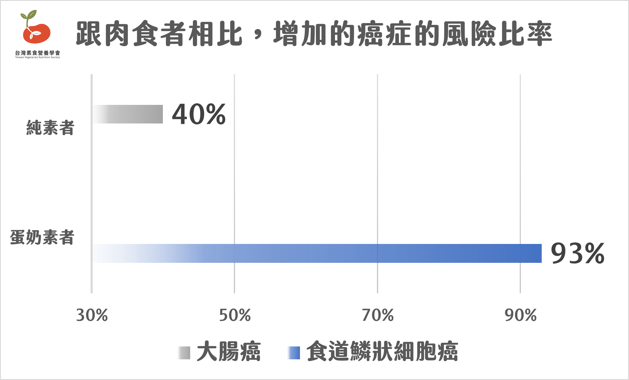 - 蛋奶素者:食道鱗狀細胞癌風險增加 93% 。